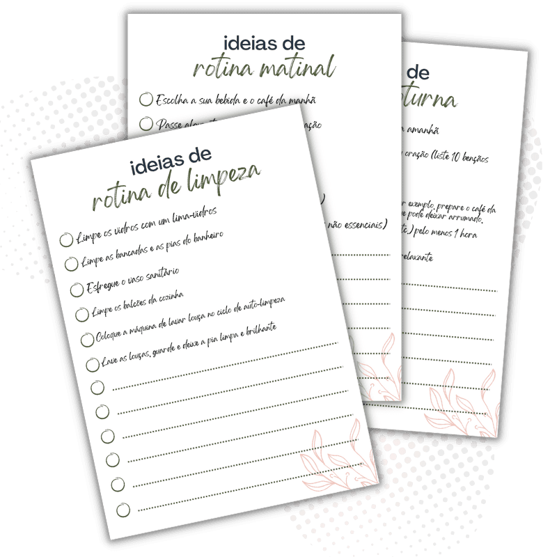 Imprima cada folha do planejador (ou preencha-a em seu tablet!) quantas vezes você precisar usá-los até que você possa fazer essas rotinas em piloto automático completo.