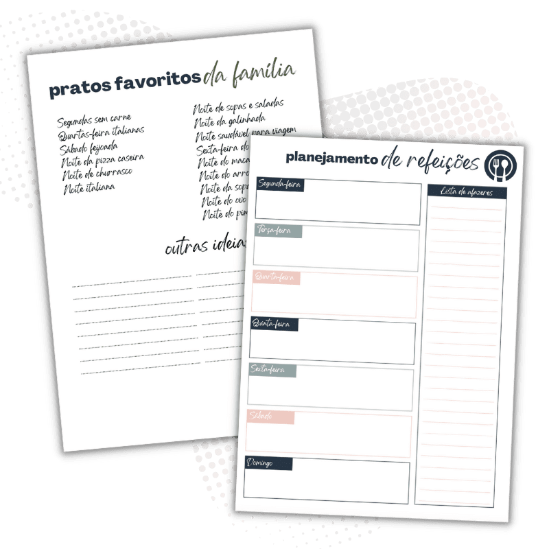 Páginas de planejamento de refeições para ajudá-la a evitar o caos. Além disso, para que você nunca fique sem lanches. Mãe nunca devem ficar sem lanches.